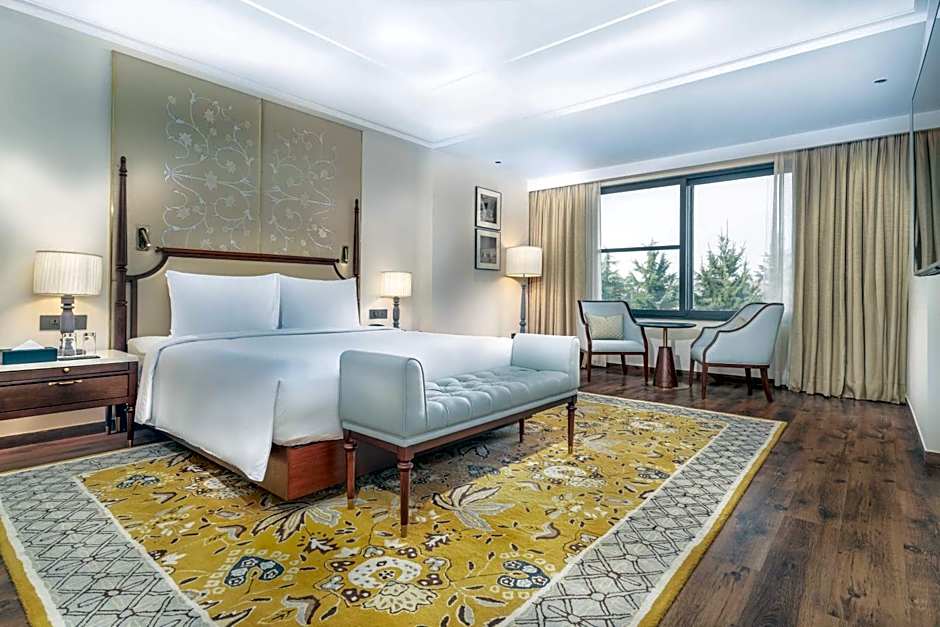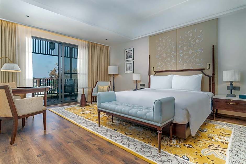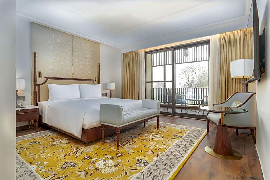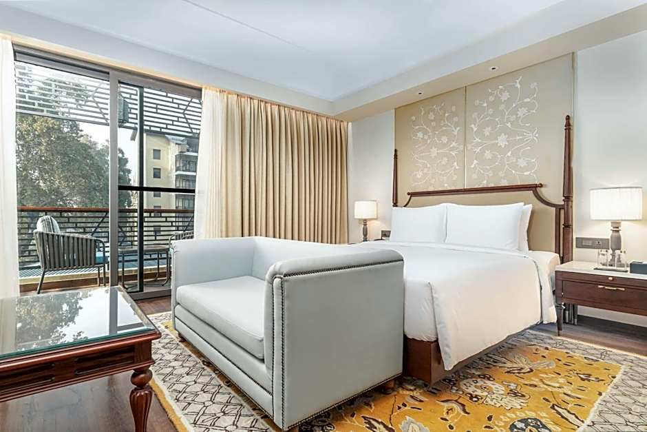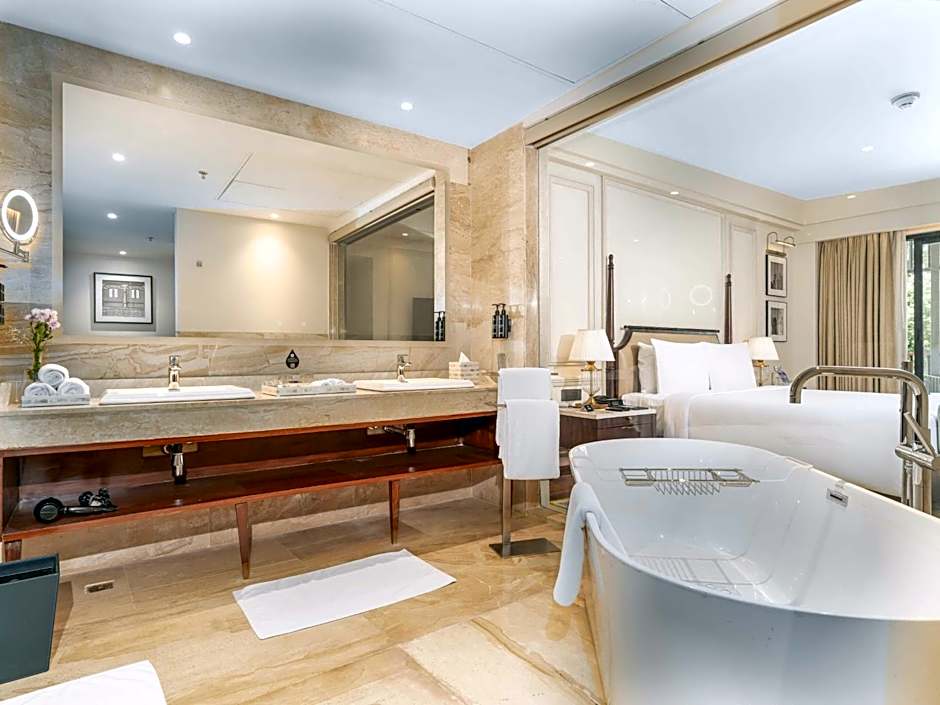 The suite features a tea and coffee maker and garden views.