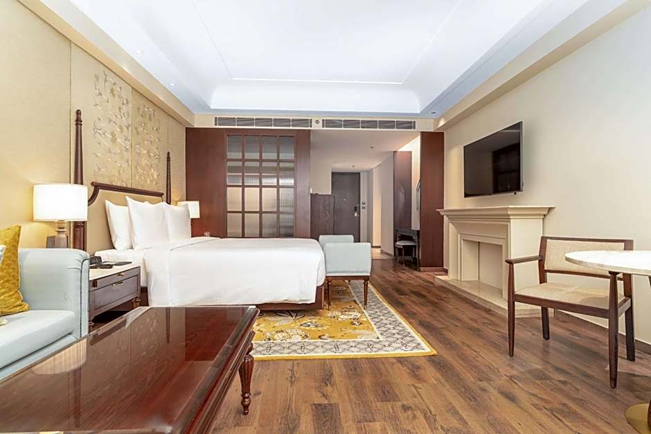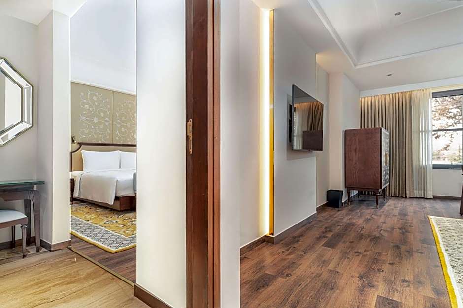 The suite features a tea and coffee maker.